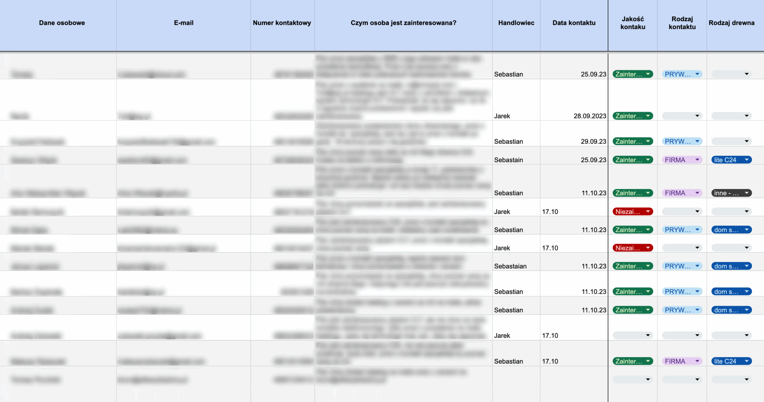 Zauważyliśmy, że rosnąca liczba zapytań staje się wyzwaniem dla handlowców. Aby żadne zapytanie nie zostało pominięte, wyszliśmy z inicjatywą i stworzyliśmy prosty arkusz kalkulacyjny, który pełnił rolę "mini CRM". Pomogło to uporządkować pracę i śledzić postępy w rozmowach z potencjalnymi klientami.