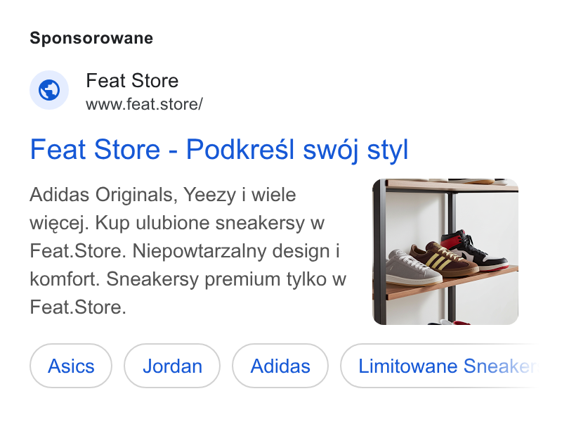 Feat.store to marka działająca w segmencie sneakersów, oferująca markowe obuwie takich marek jak Nike, Air Jordan, ASICS, adidas czy New Balance. Działalność firmy wywodzi się z modelu B2B, opartego na współpracy handlowej i relacjach z partnerami biznesowymi.