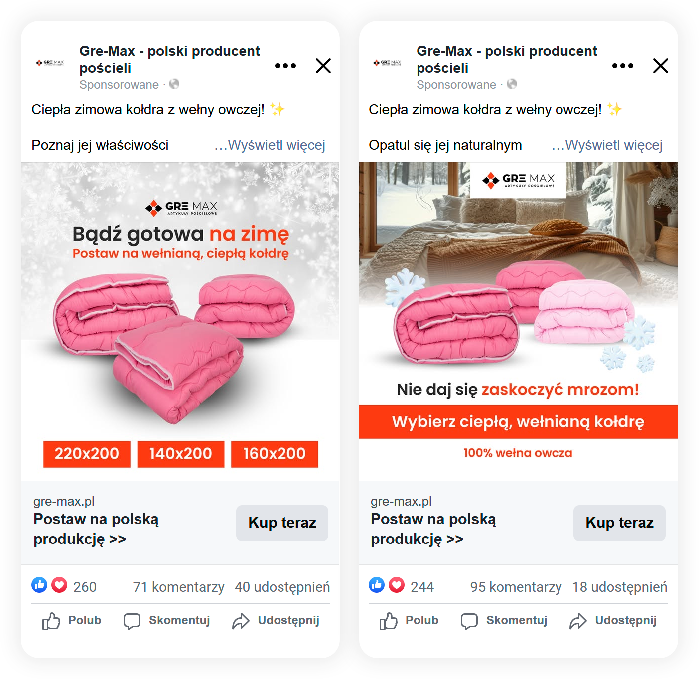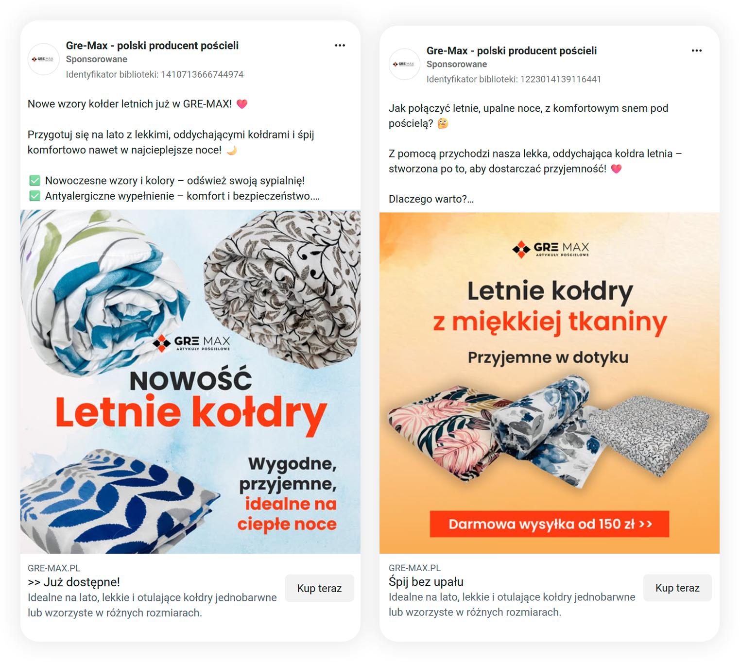 W pierwszych miesiącach działań sprzedażowych wyraźnie wyodrębnił się asortyment, który najlepiej odpowiadał na komunikację reklamową — kołdry letnie. Na tej podstawie świadomie skupiliśmy przekaz i budżet właśnie na tym produkcie, testując różne warianty komunikacji i formaty reklam.