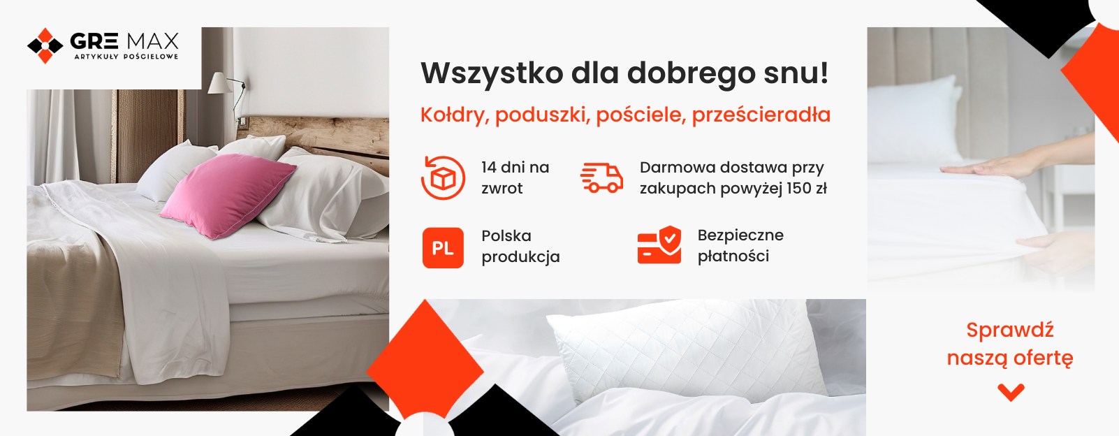 GRE-MAX to polski producent i sprzedawca artykułów pościelowych, działający na rynku od 2013 roku. Firma wyrosła z rodzinnej działalności handlowej i stopniowo rozwinęła własne zaplecze produkcyjne oraz logistyczne, obejmujące dziś kilkaset metrów powierzchni magazynowej i produkcyjnej.