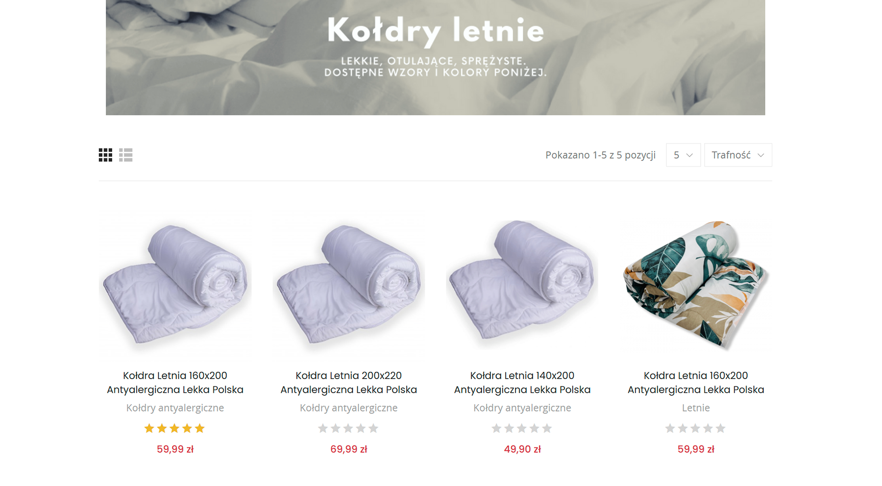 sklep online z artykułami do snu (kołdry, pościel, poduszki)