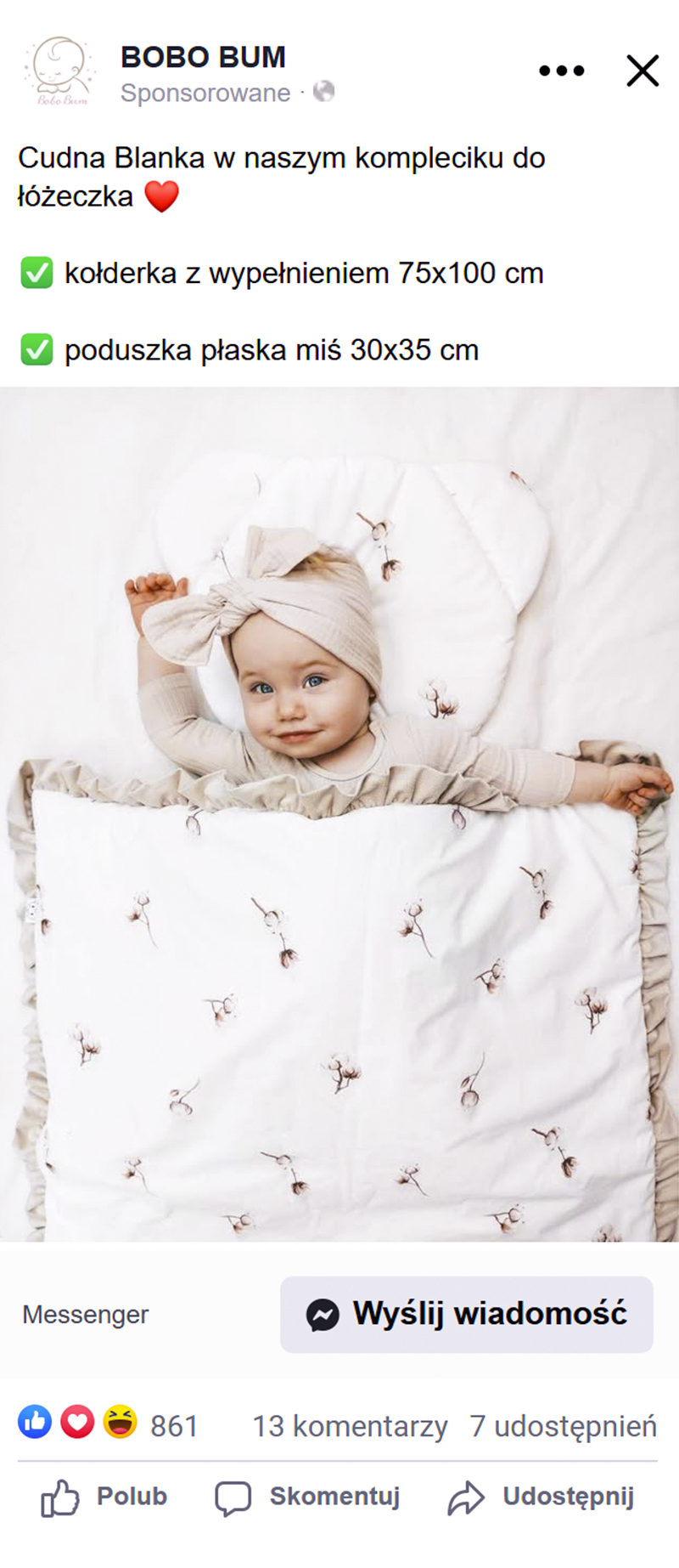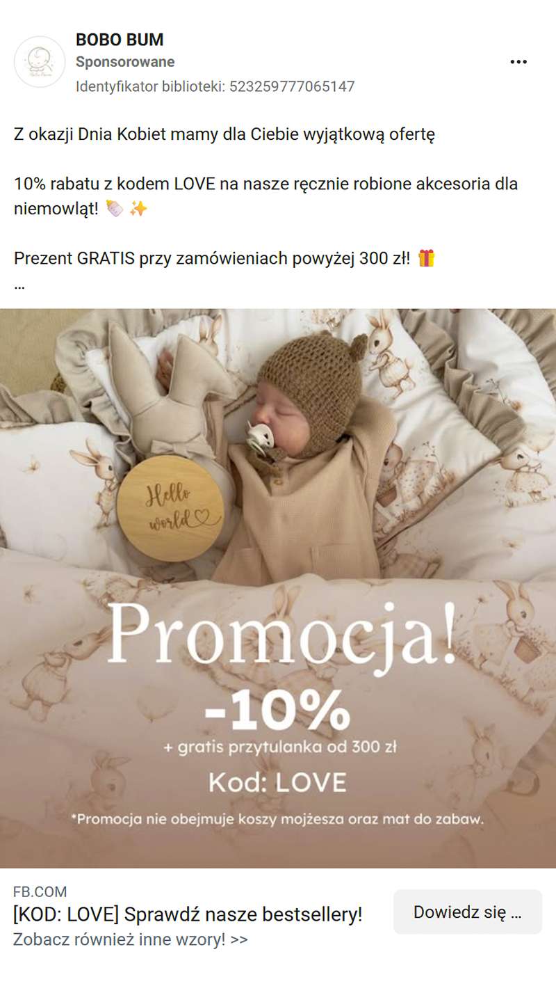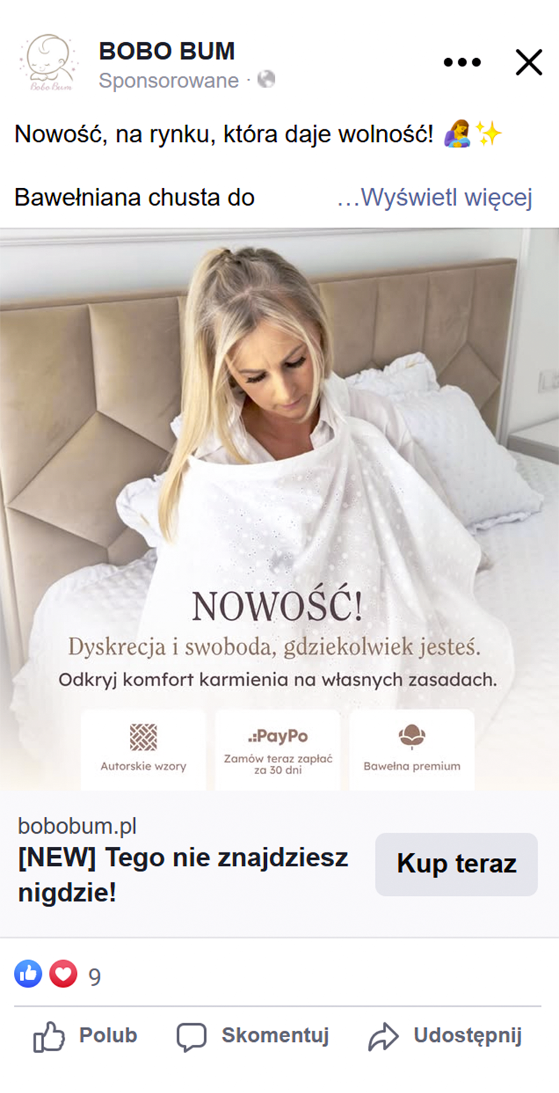 Opierając się na bogatym doświadczeniu w branży e-commerce i sukcesach w prowadzeniu licznych sklepów internetowych, nasza ekspertka ds. Meta Ads, strategicznie skoncentrowała komunikację reklamową na promocji bestsellerowych wyprawek.