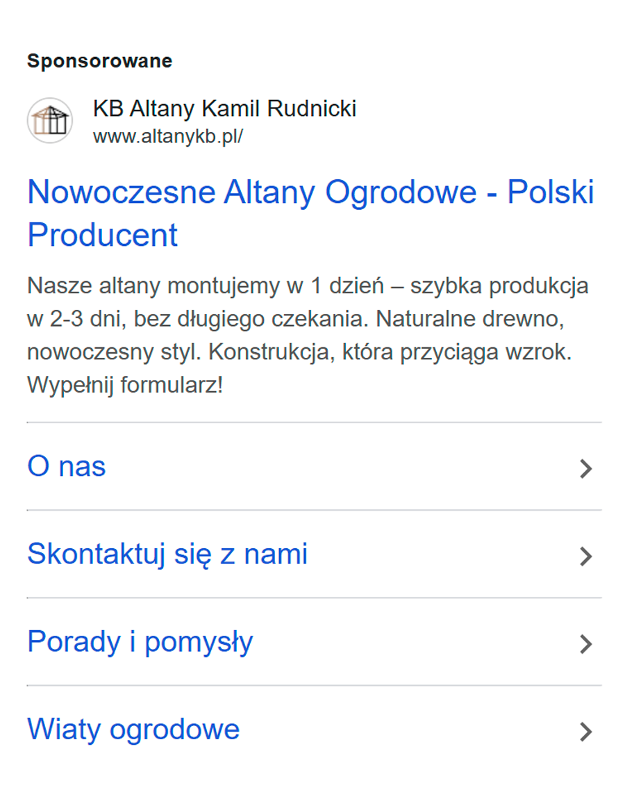 Wiedzieliśmy, że kluczem do sukcesu nie jest generowanie jak największej liczby zapytań, ale dotarcie do osób, które aktywnie szukają producenta altan i są skłonne dokonać zakupu. Dlatego w oparciu o nasze doświadczenie z firmami produkcyjnymi i budowlanymi wdrożyliśmy strategię na podstawie kampanii reklamowych w Google Ads.