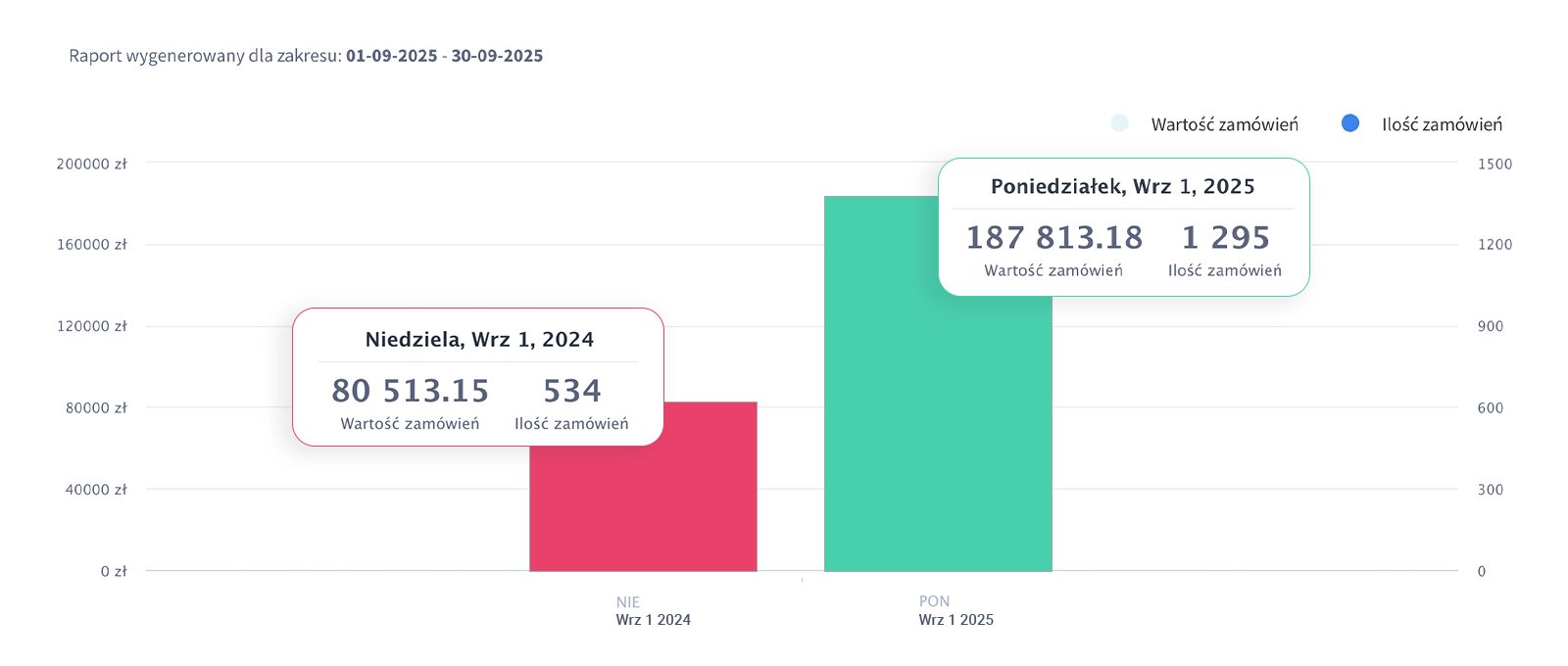 - +20–30% sprzedaży r/r we wrześniu (vs 2024),