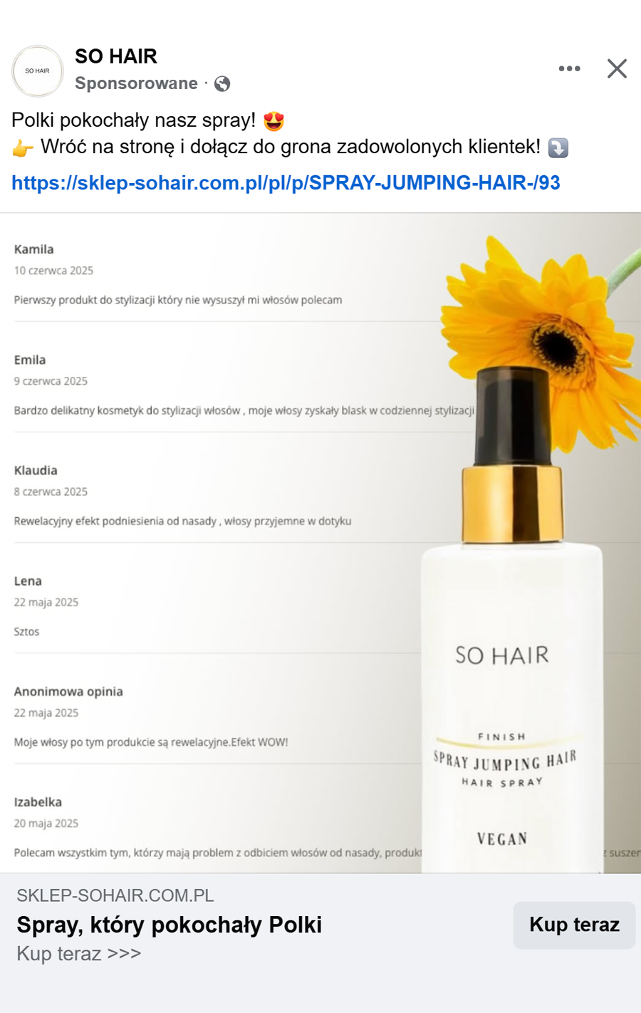 Dodatkowo, dzięki zbudowaniu stabilnego systemu sprzedażowego, So Hair planuje teraz poszerzyć ofertę o nowe produkty (np. szczotki do włosów). Wprowadzenie ich będzie znacznie łatwiejsze, bo klientka dysponuje już rozbudowaną bazą remarketingową oraz sprawdzoną strukturą kampanii, którą możemy replikować i rozwijać.